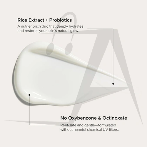 این محصول محبوب، با دفاع قدرتمند در برابر آفتاب و آبرسانی مغذی، برای انواع پوست، به خصوص آنهایی که به رطوبت فوری نیاز دارند و می خواهند تحریک پوستی به حداقل برسد، عالی است. عصاره برنج موجود در آن، سرشار از ویتامین های B، C، E و آنتی اکسیدان هاست، و عصاره های پروبیوتیک نیز به آرامش و آبرسانی پوست کمک می کنند.