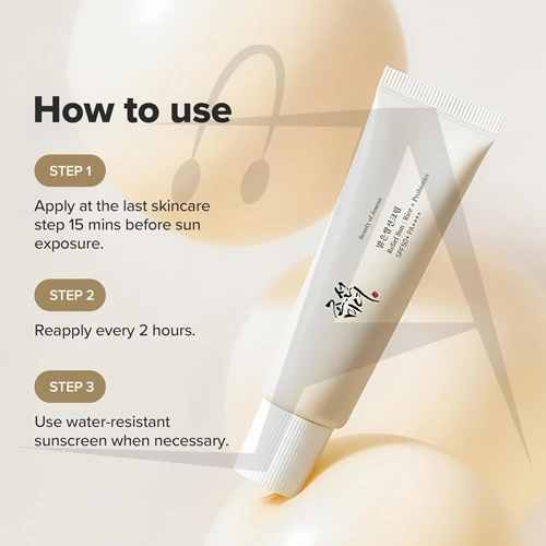 برای استفاده، آن را 15 دقیقه قبل از قرار گرفتن در معرض آفتاب به عنوان آخرین مرحله از روتین صبحگاهی خود به مقدار کافی روی پوست بمالید و هر ۲ تا ۳ ساعت یک بار برای محافظت مداوم در برابر آفتاب تمدید کنید. اگر پوست چربی دارید، می توانید از مرطوب کننده اضافی صرف نظر کنید یا از مدل Relief Sun Aqua-Fresh : Rice + B5 (SPF50+ PA++++) که مخصوص پوست های چرب و مختلط است، استفاده کنید.