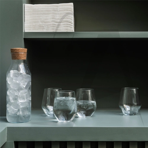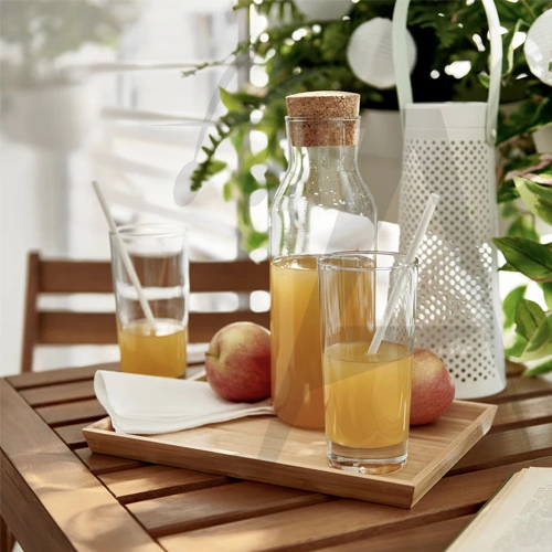 بطری ایکیا مدل 365+، یک بطری شیشه ای شفاف و کاربردی با درپوش چوب پنبه ای است که با ظرفیت یک لیتر، برای سرو و نگهداری انواع نوشیدنی های سرد و گرم ایده آل است. این پارچ آب ایکیا به دلیل طراحی باریکش، به راحتی در درب یخچال قرار می گیرد و با ارتفاع ۲۷ سانتی متر و قطر ۹ سانتی متر، فضای کمی را اشغال می کند. بدنه این پارچ از شیشه مقاوم ساخته شده که علاوه بر استحکام بالا، باعث می شود تا این محصول ایکیا برای استفاده روزمره کاملاً مناسب باشد و وزن 0.45 کیلوگرمی آن هم حمل و نقلش را آسان می کند.